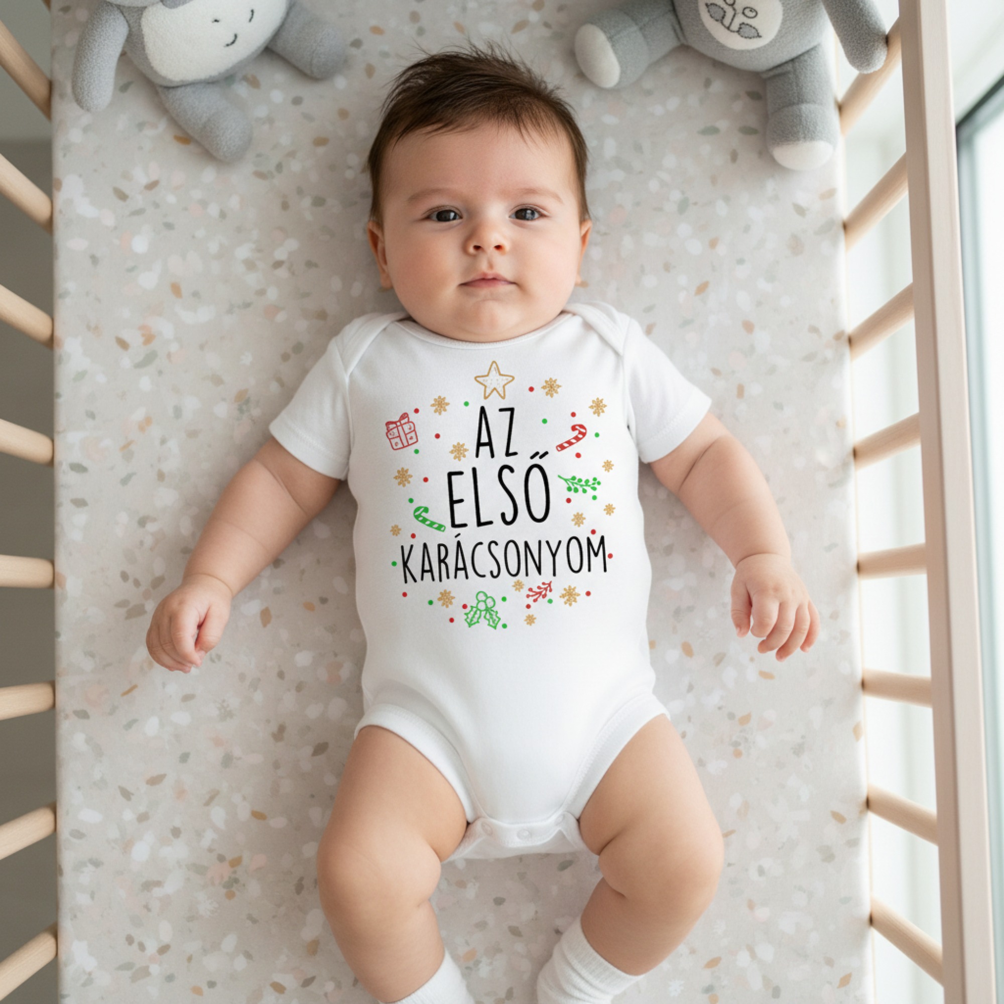 Az első karácsonyom gyerek body, karácsonyi mintákkal