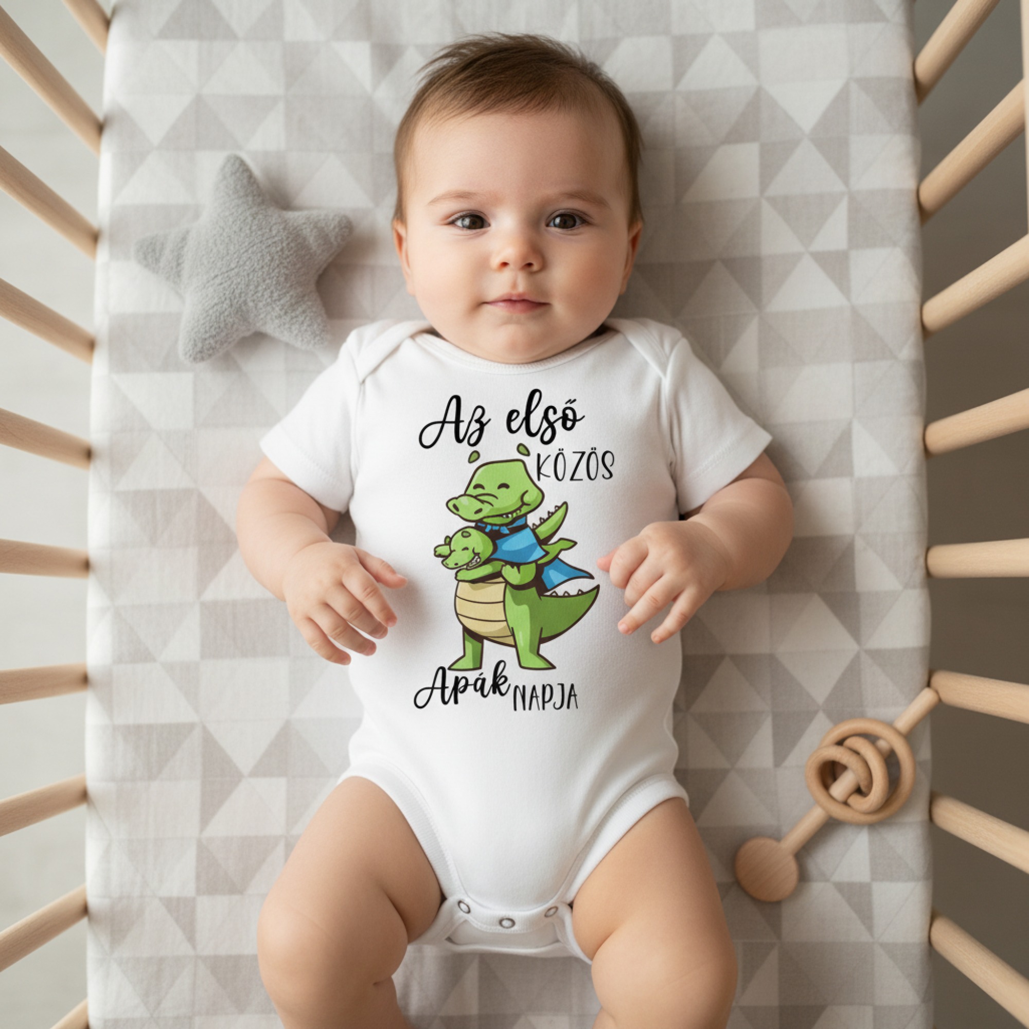 Az első közös Apák napja, cuki krokodilokkal, fiús gyerek body