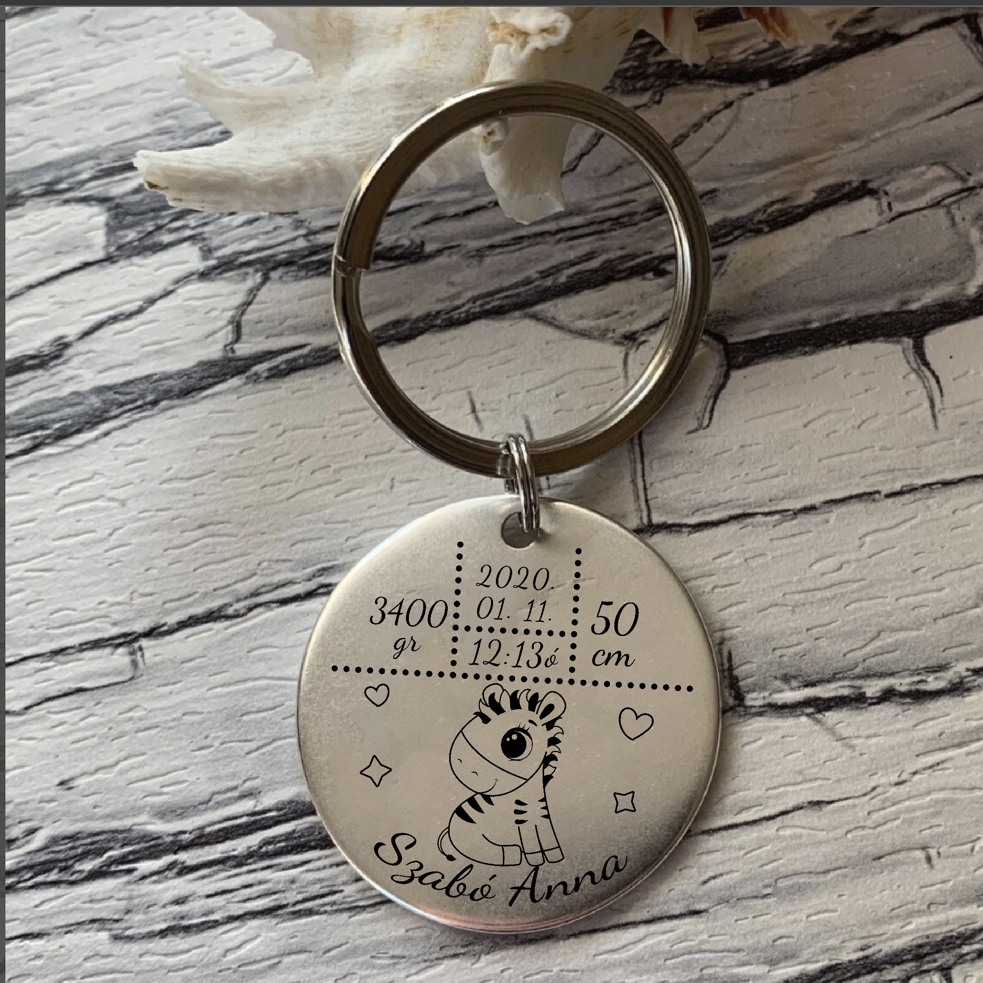 Baba emlékőrző kulcstartó, zebrás