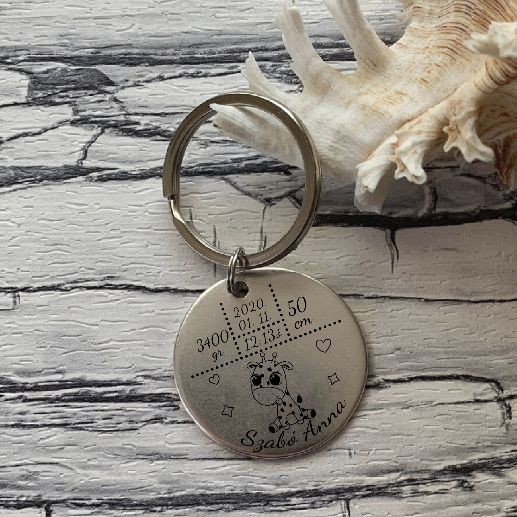 Baba emlékőrző kulcstartó, zsiráfos