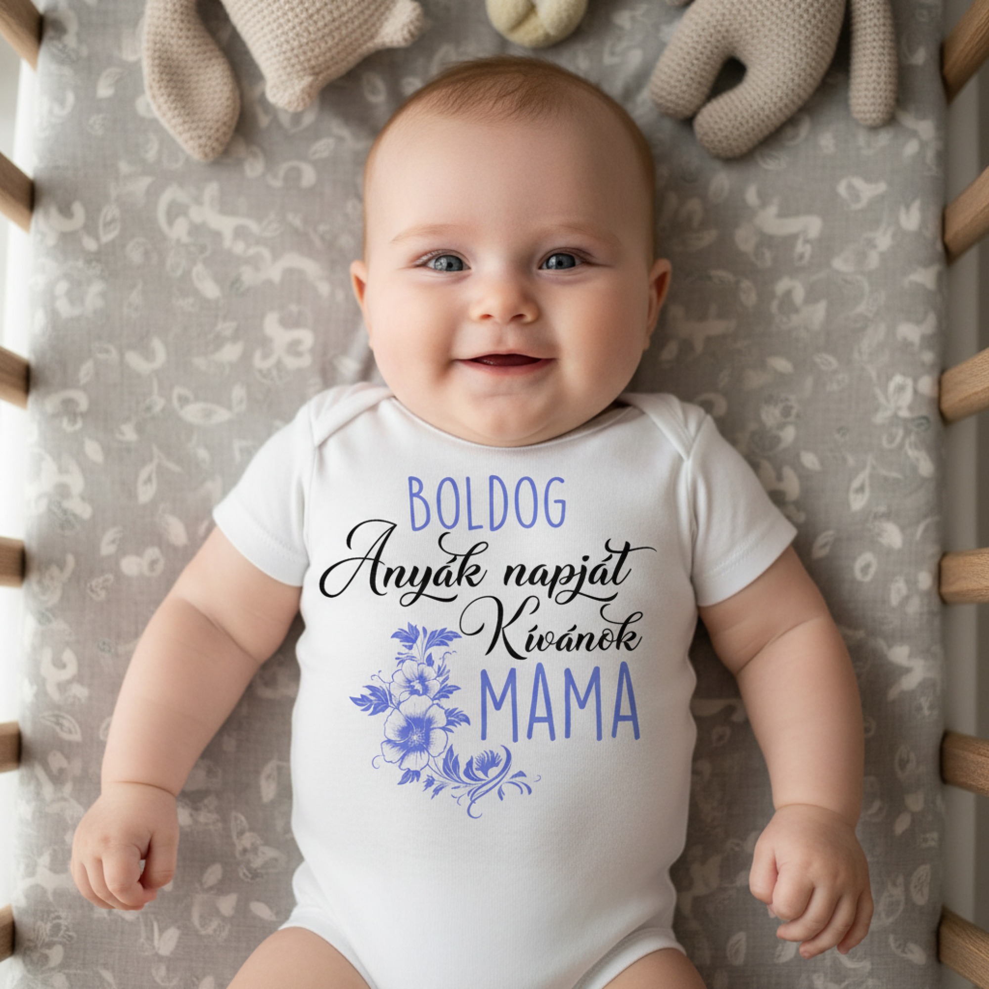 Boldog anyák napját kívánok mama, lila mintás gyerek body