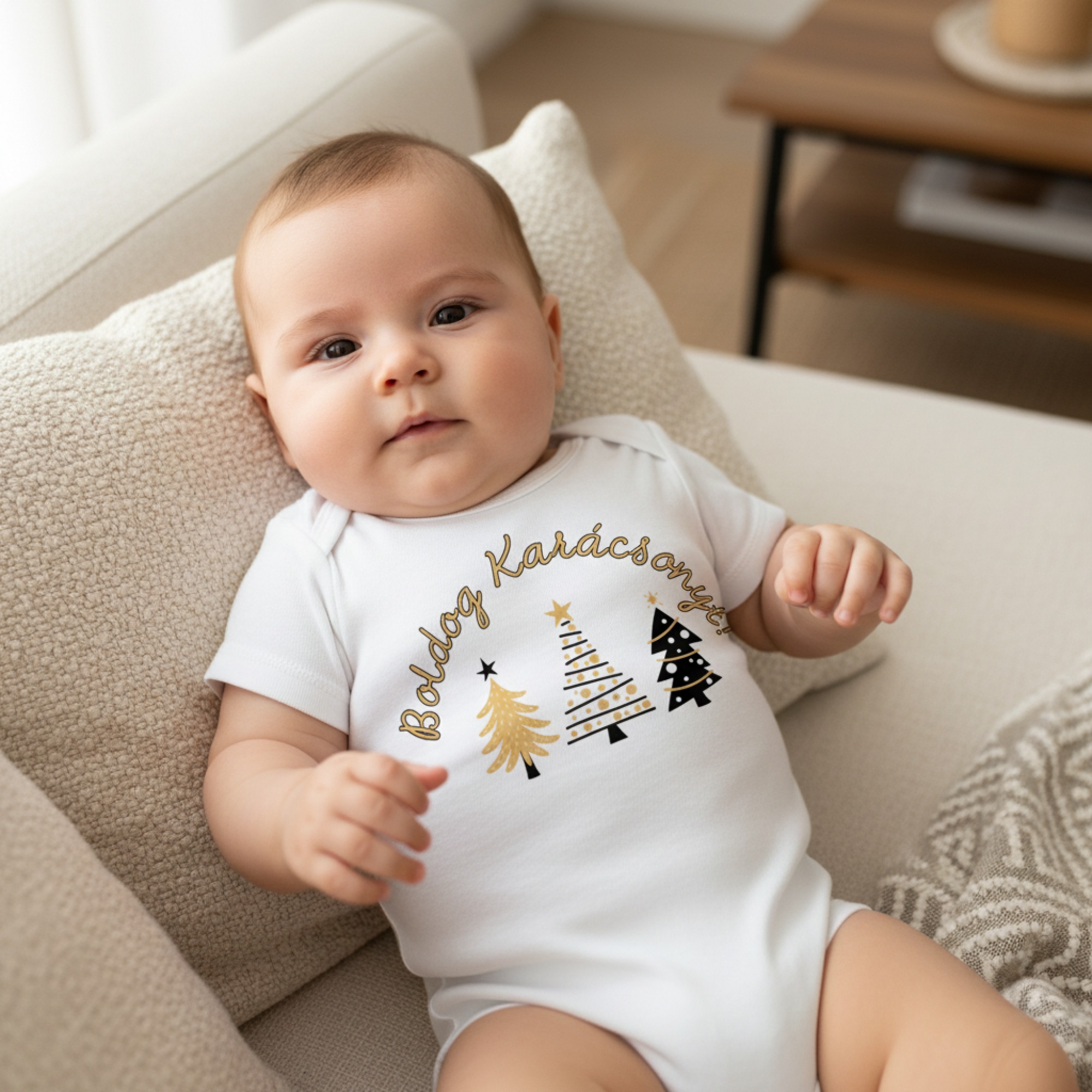 Boldog karácsonyt gyerek body, három karácsonyfával