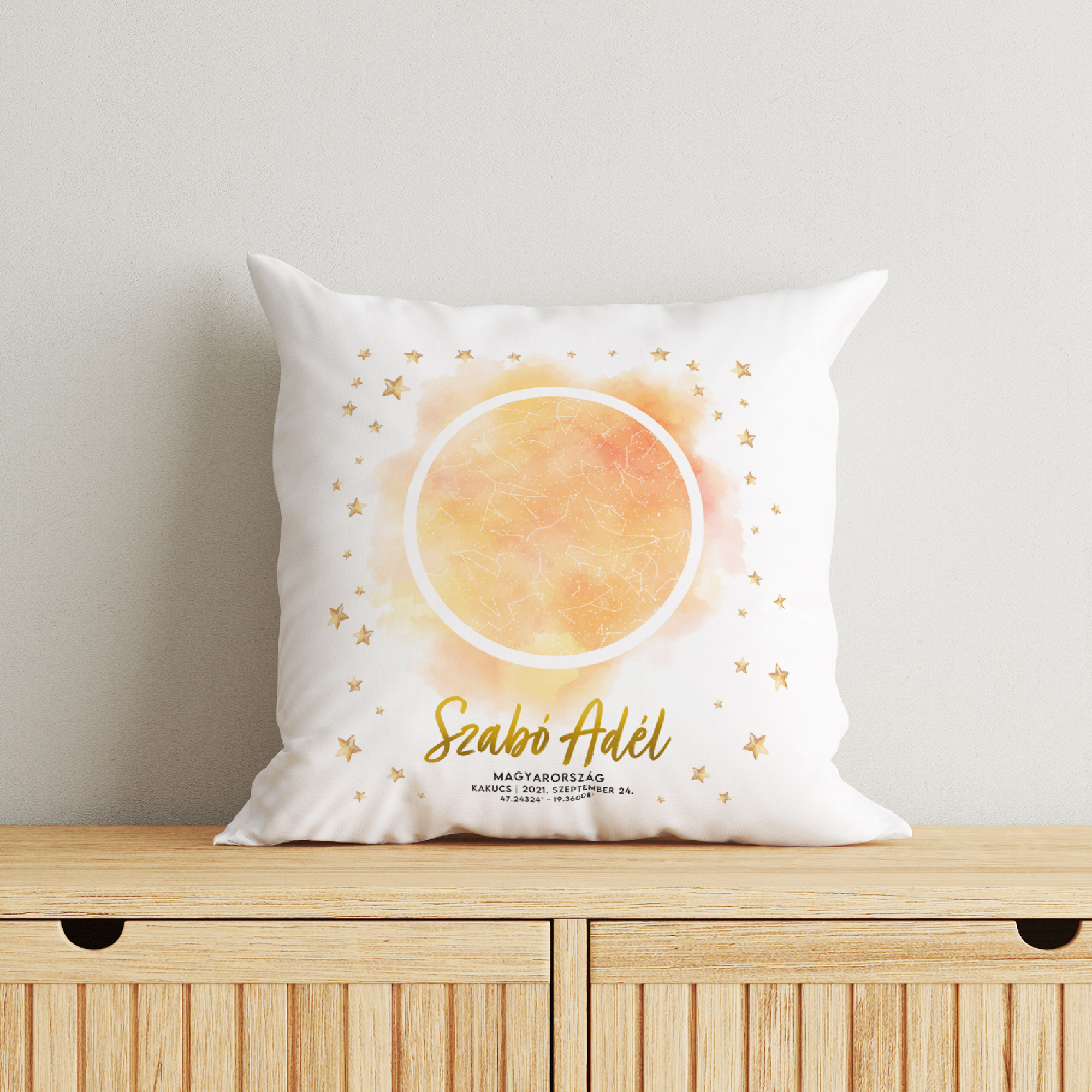 Csillagtérképes párna, sárga színben
