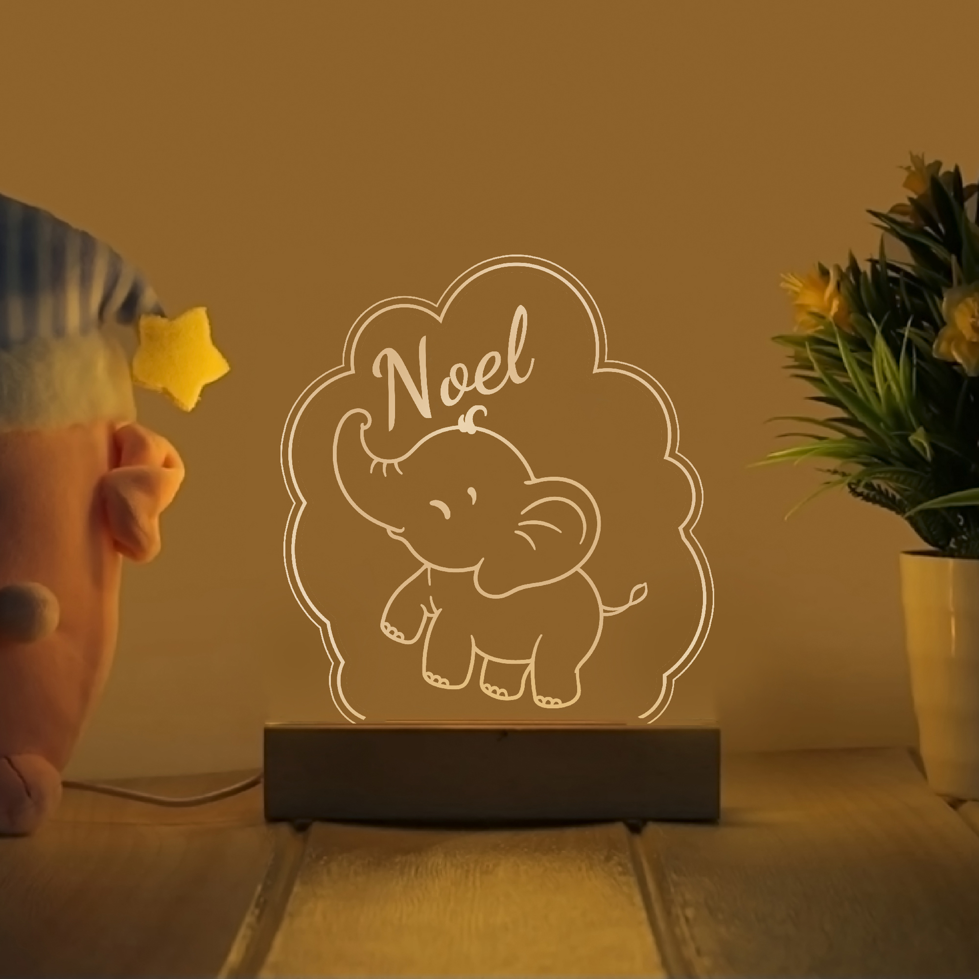 Elefánt, felhő formában névre szóló gyerek éjjeli led lámpa