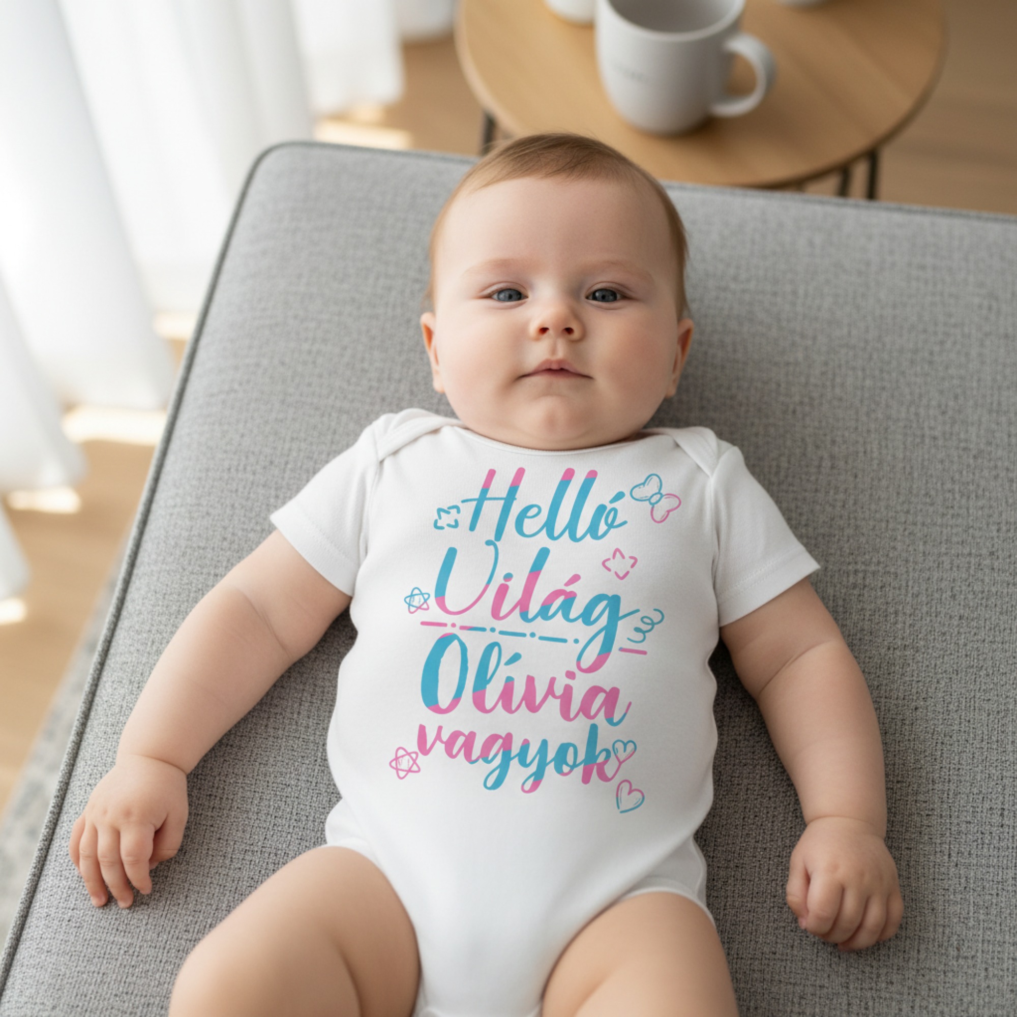 Helló világ gyerek body, névvel