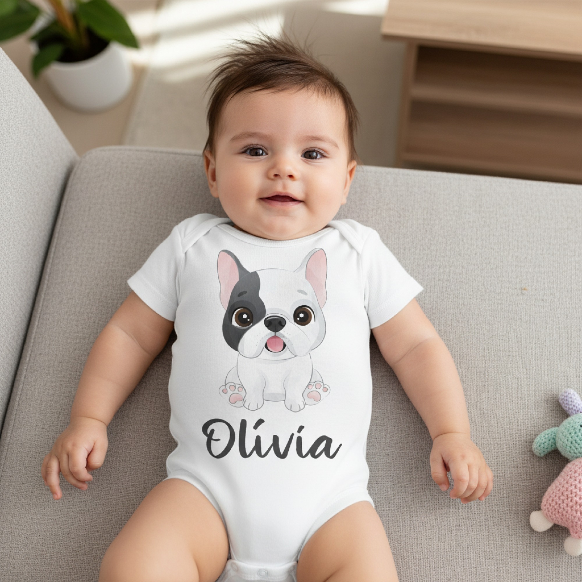 Kölyök francia bulldog gyerek body saját névvel
