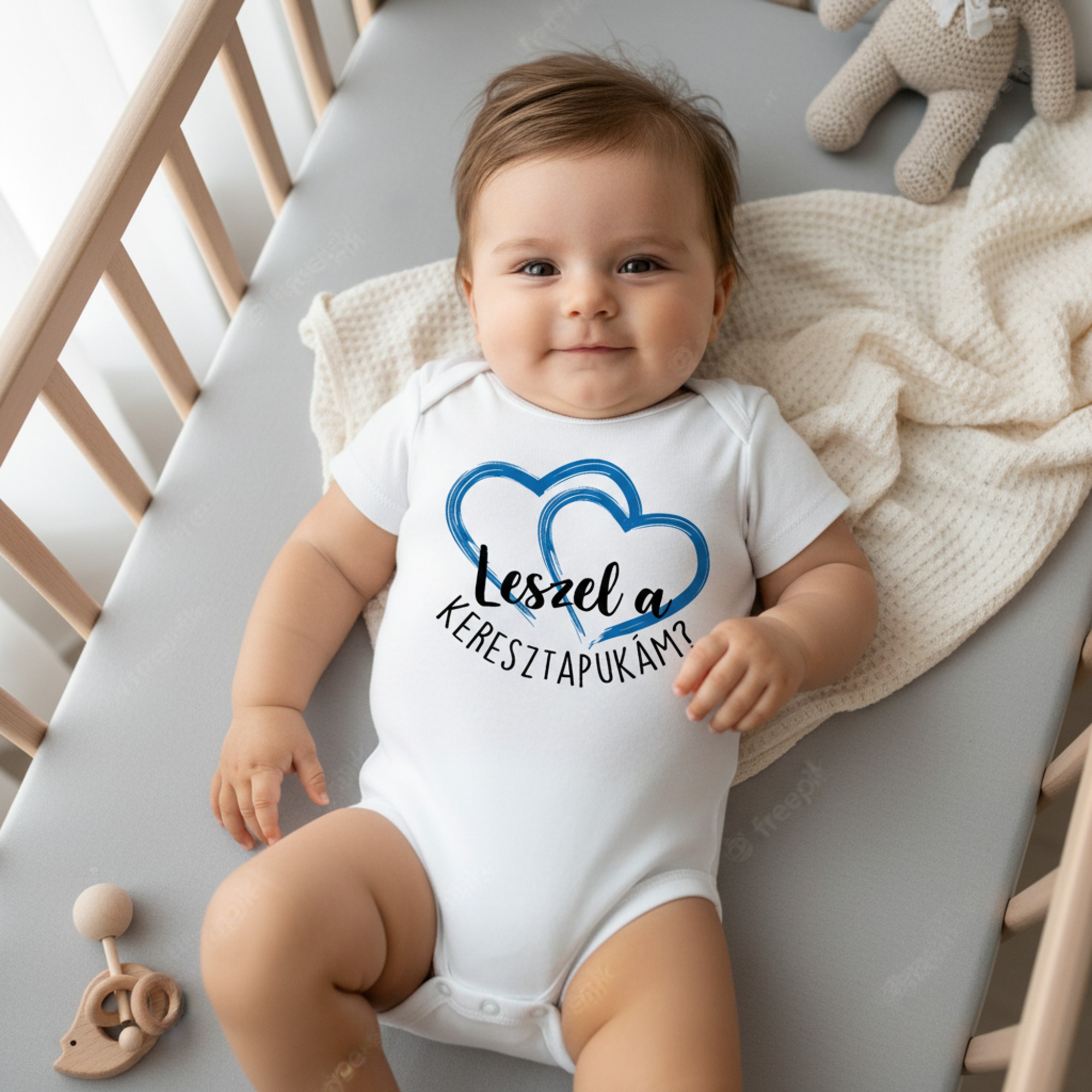 Leszel a keresztapukám? kék szivecskékkel gyerek body