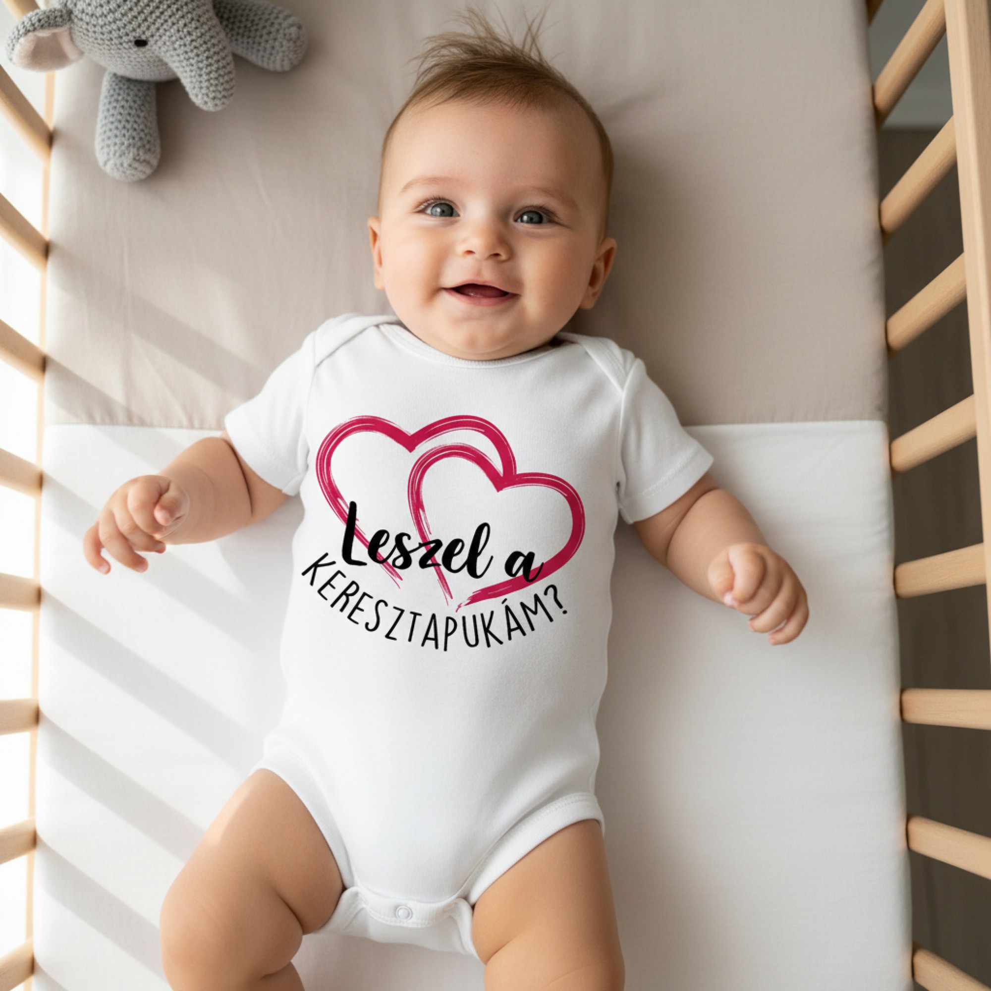 Leszel a keresztapukám? pink szivecskékkel gyerek body