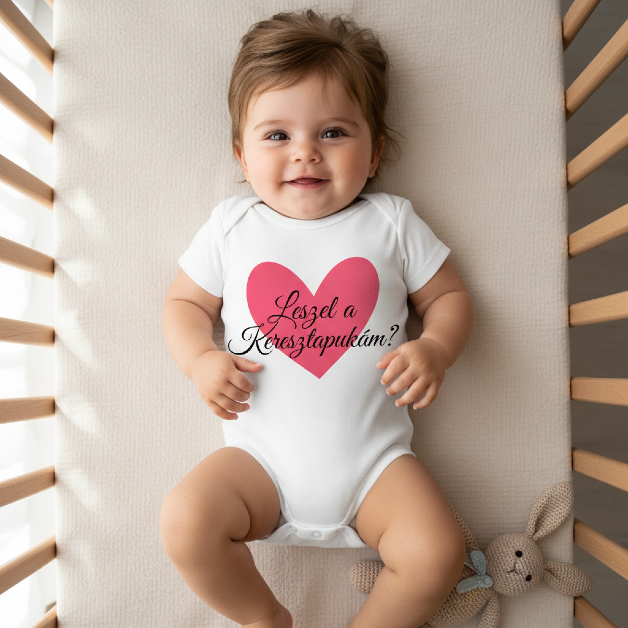 Leszel a keresztapukám? szív formában, gyerek body