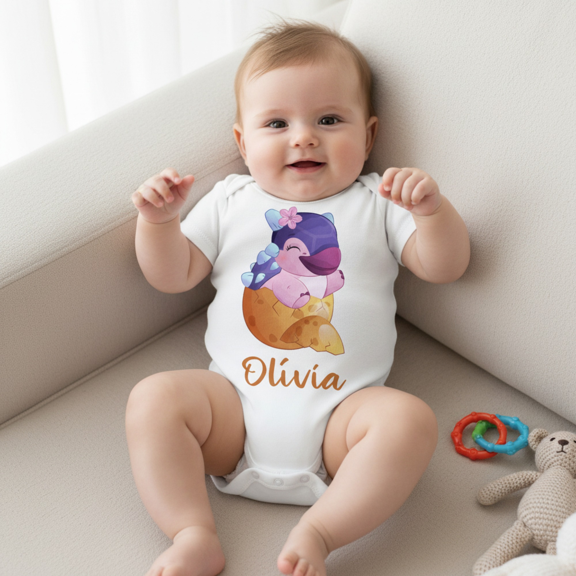 Lilás rózsaszín dínó narancssárga tojásban gyerek body saját névvel