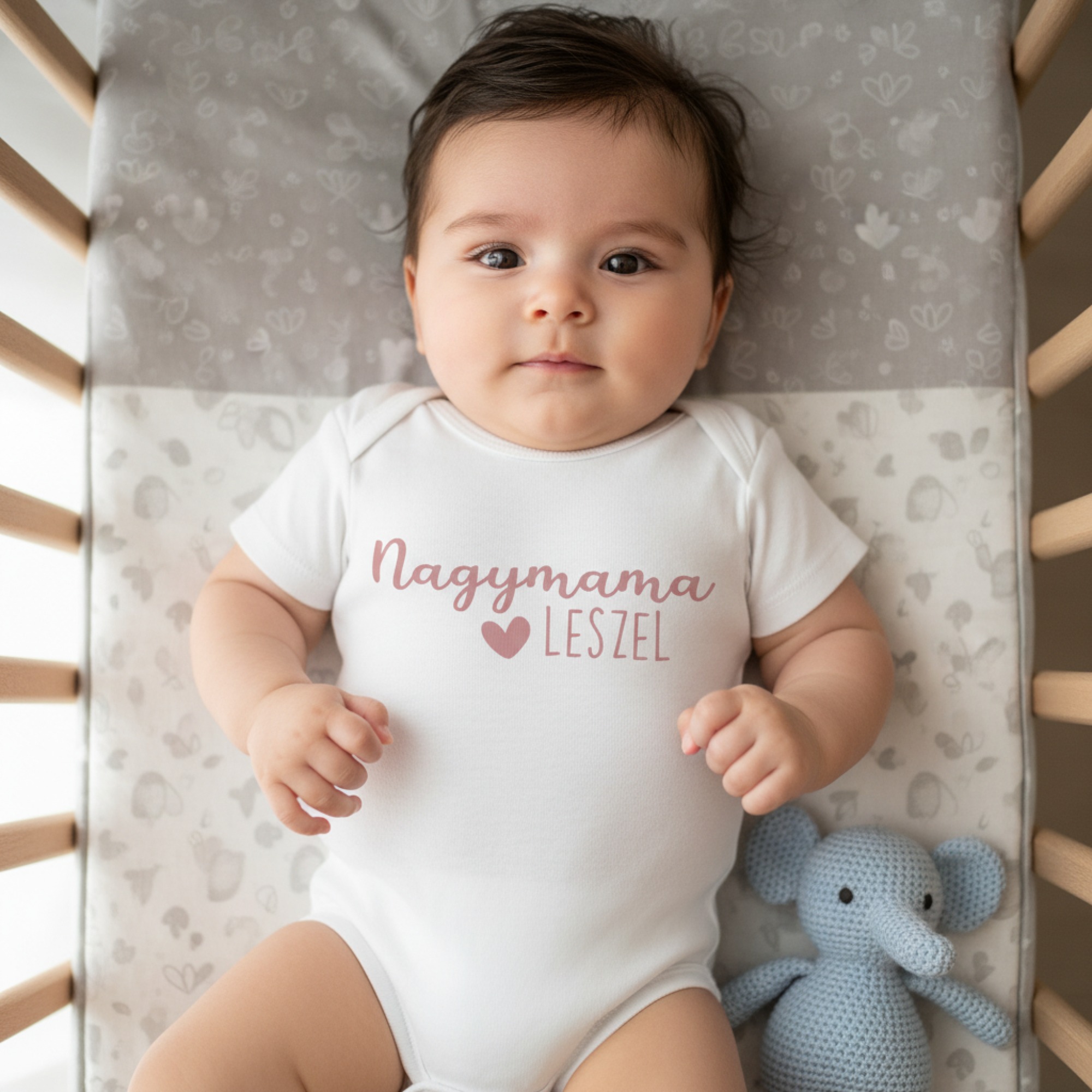 Nagymama leszel gyerek body, rózsaszín szöveggel