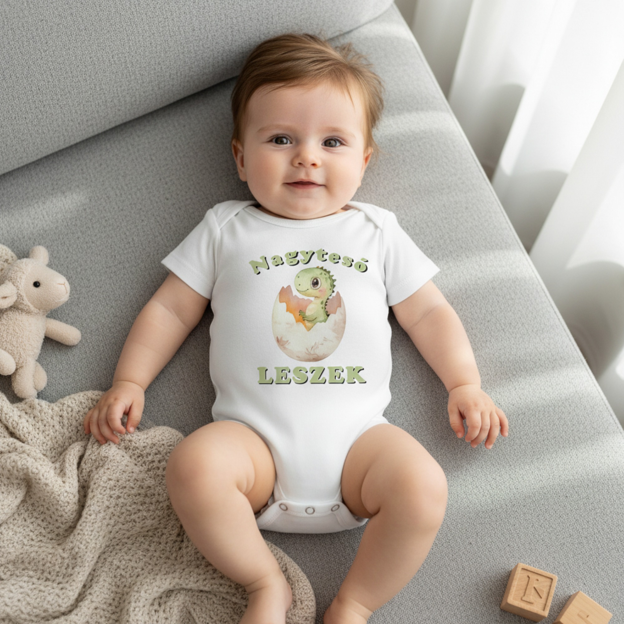 Nagytesó leszek, zöld dínóval, tojásban gyerek body