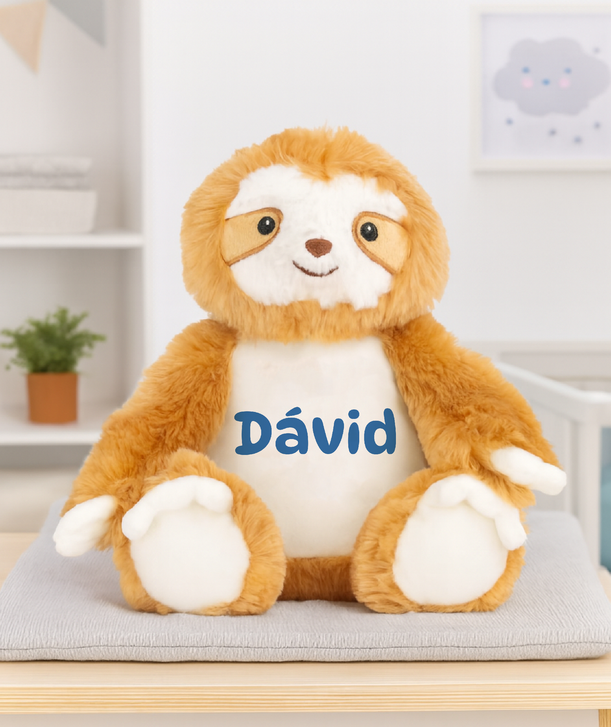 Névre szóló plüss lajhár, választható színű szöveggel