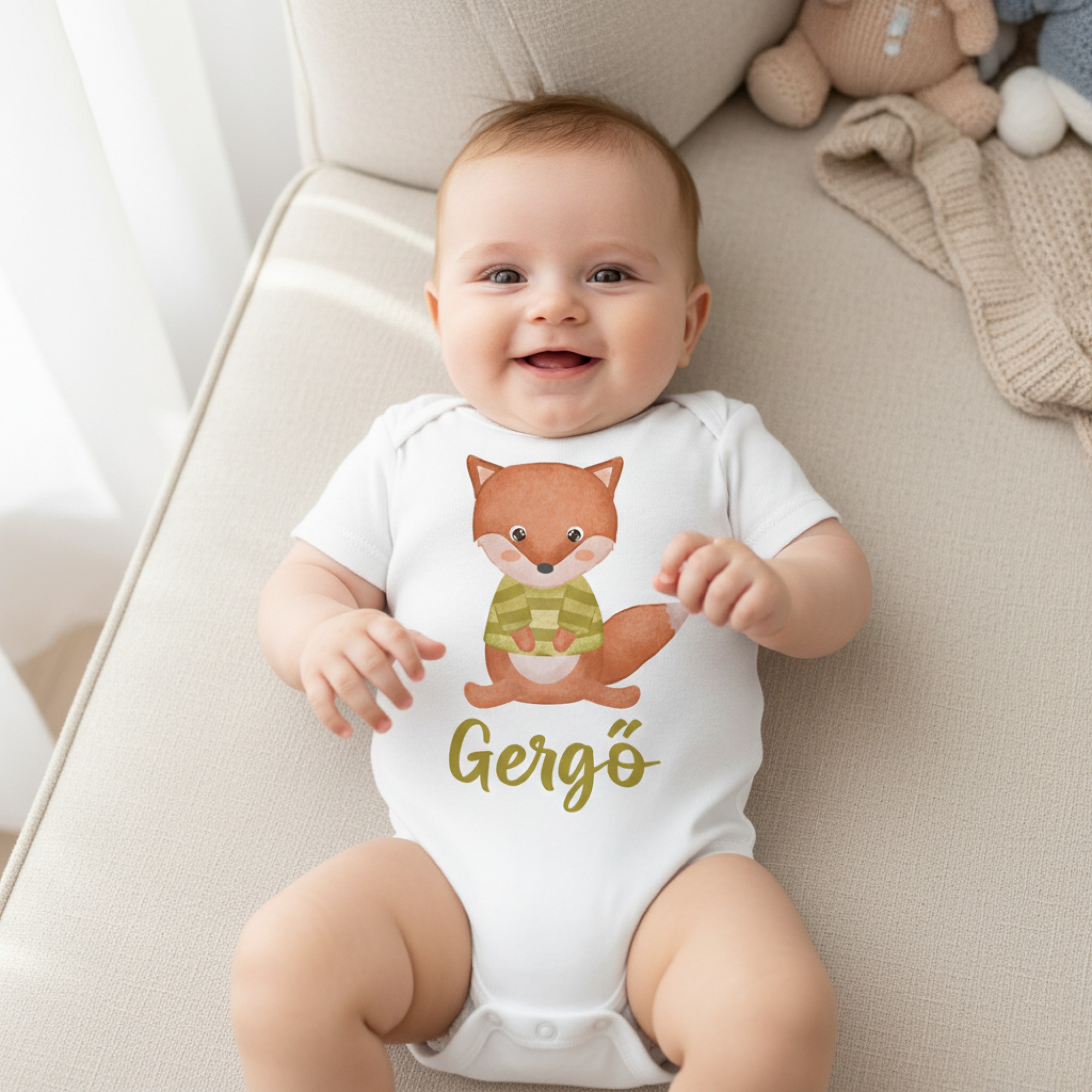 Pulcsis rókás gyerek body saját névvel