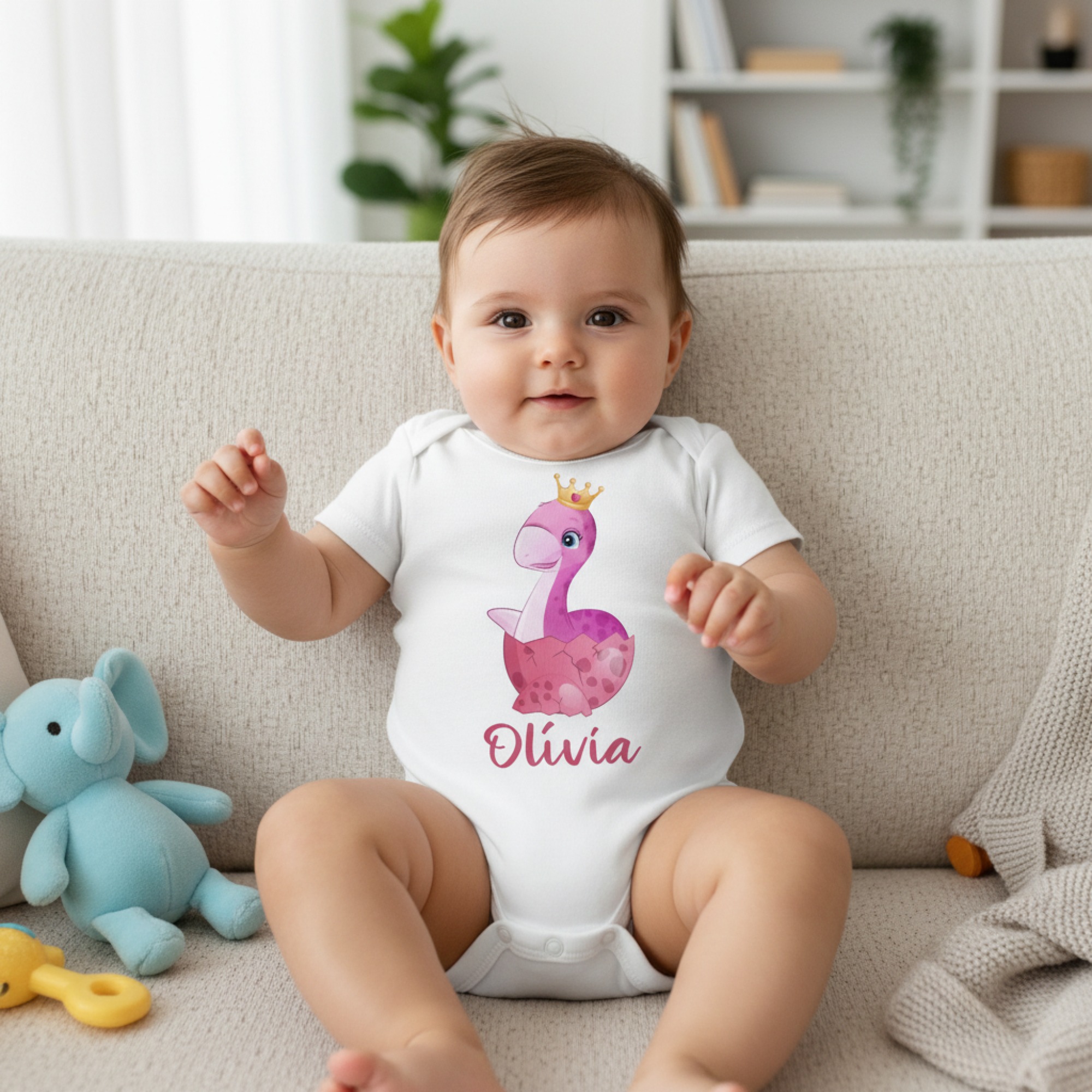 Rózsaszín hercegnő dínó rózsaszín tojásban gyerek body saját névvel