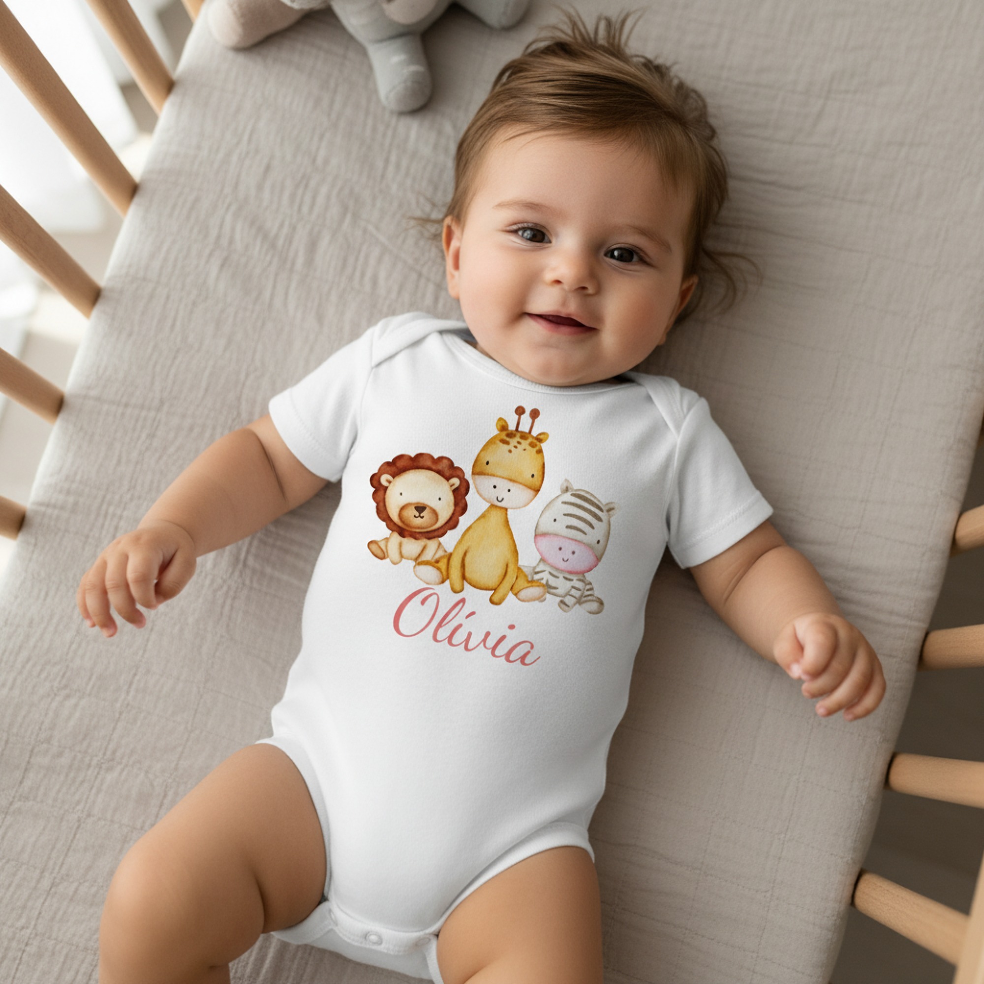 Szafari állatos gyerek body, rózsaszín névvel