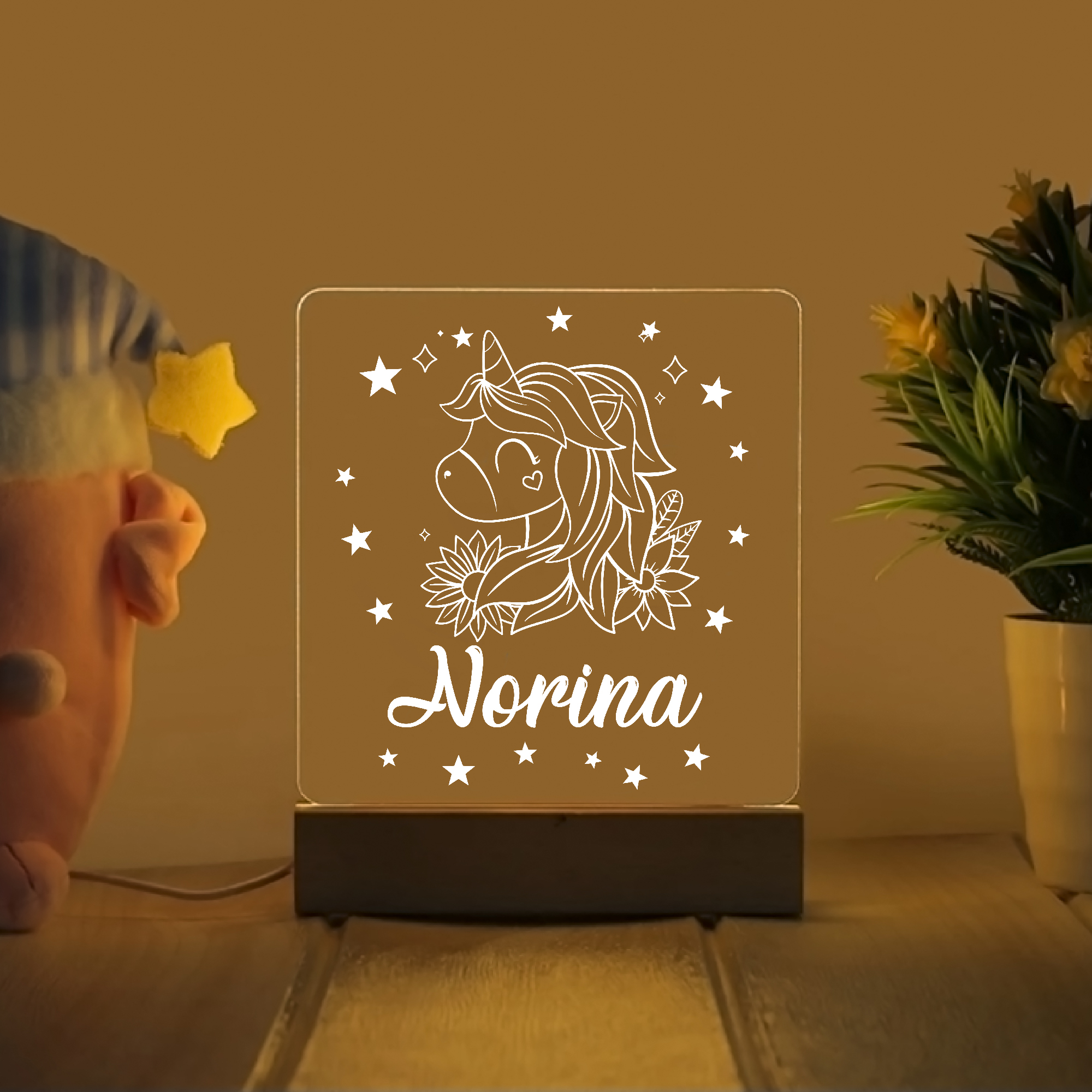 Unikornis virágokkal névre szóló gyerek éjjeli led lámpa