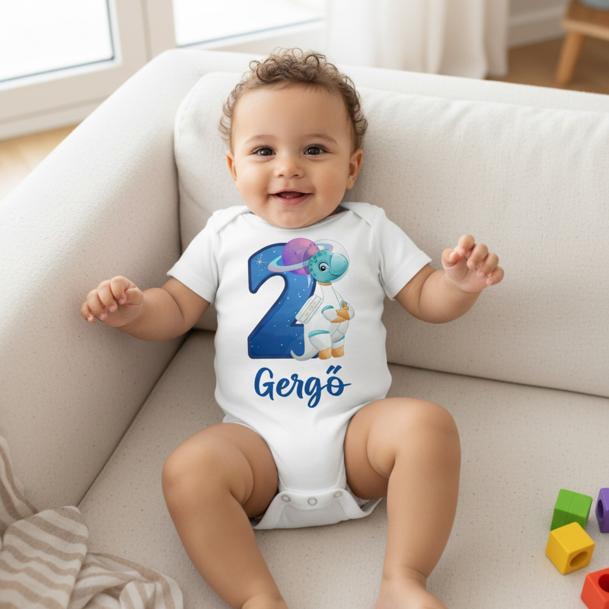 Űrhajós dínós második szülinapos gyerek body saját névvel