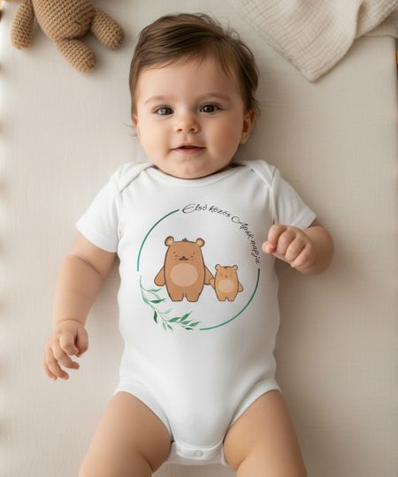 Első közös Apák napja, macik levélkoszorúban gyerek body