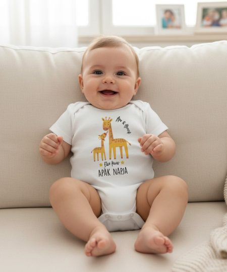 Első közös Apák napja, cuki zsiráfokkal, névvel gyerek body