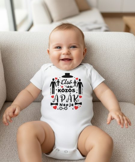 Első közös apák napja, koccintós gyerek body, névvel, évszámmal