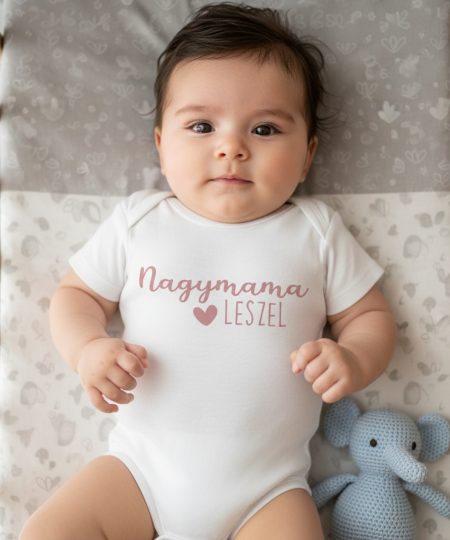 Nagymama leszel gyerek body, rózsaszín szöveggel