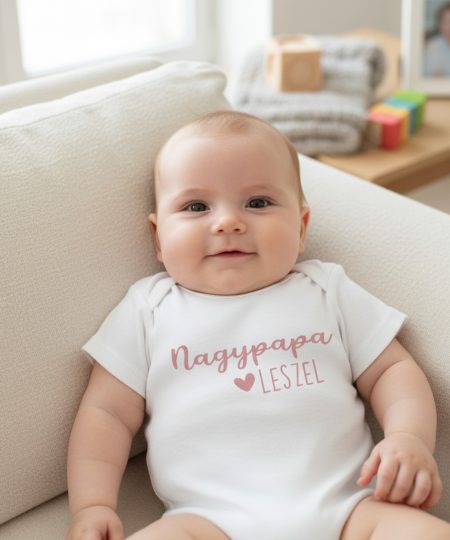 Nagypapa leszel gyerek body, rózsaszín szöveggel