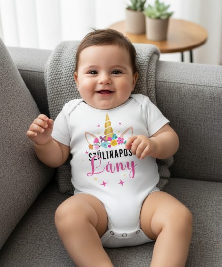 Rózsaszín lufis nyuszis születésnapi gyerek body, válaszható életkorral