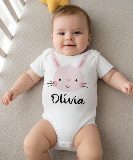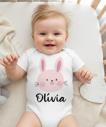 Rózsaszín nyuszis gyerek body saját névvel