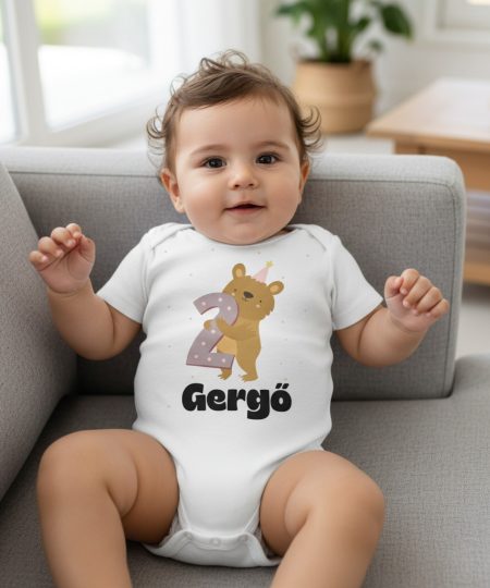 Macis második szülinapos gyerek body saját névvel