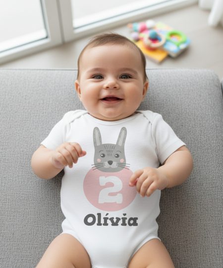 Nyuszis második szülinapos gyerek body saját névvel