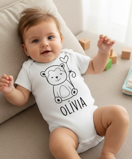 Majom szívvel gyerek body saját névvel