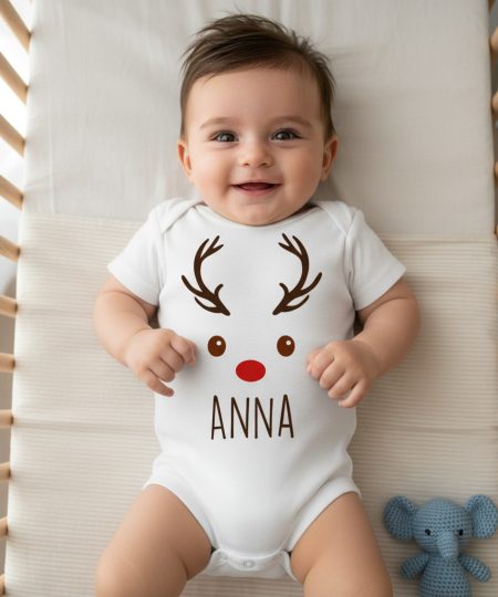 Rénszarvasos gyerek body saját névvel