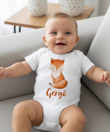 Watercolor hatású róka párna, gyermek nevével, adataival
