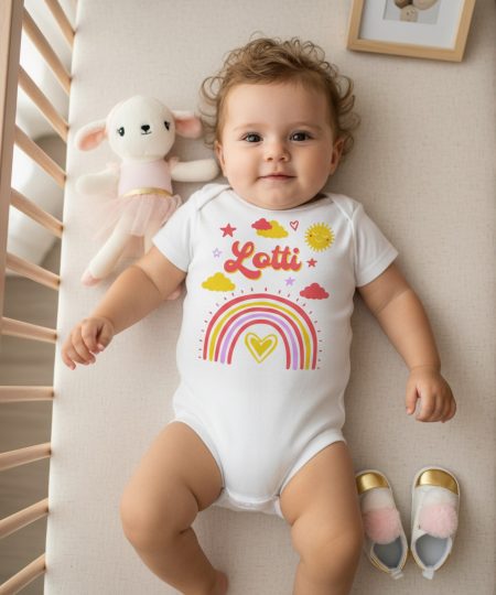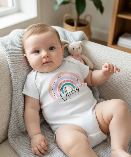 Születési poszter, gyermek nevével, születési adataival, választható szivárvány mintával
