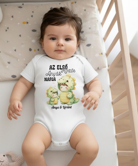 Az első közös anyák napja, dínó jelmezes, névvel gyerek body