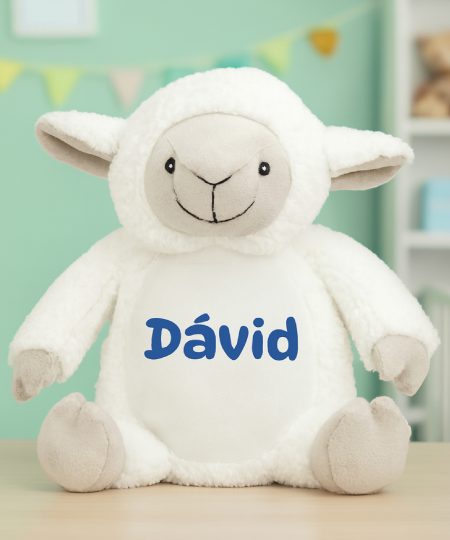Névre szóló plüss bárány, választható színű szöveggel