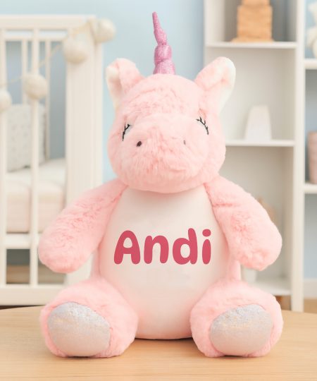 Névre szóló plüss unikornis, választható színű szöveggel
